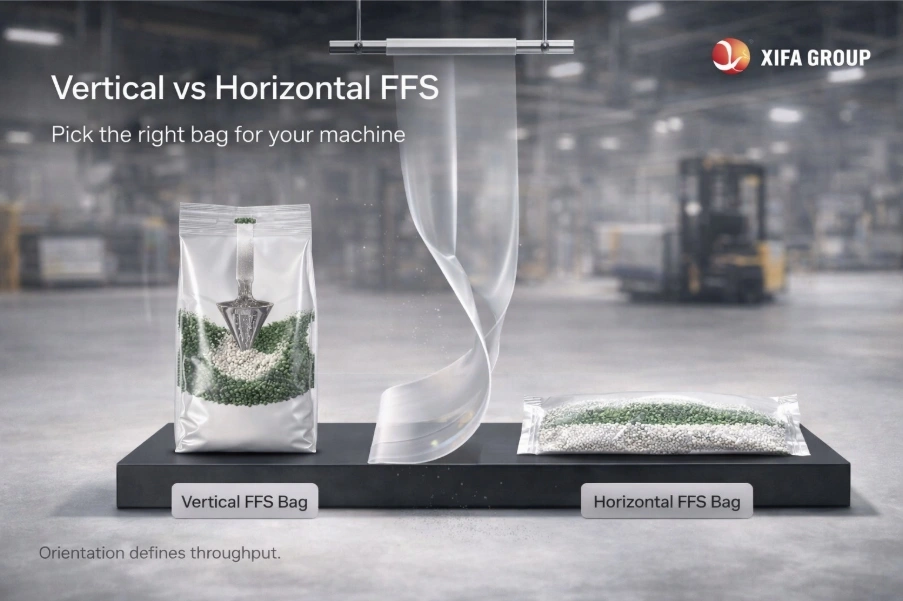 XIFA Group runs an 8-color gravure printing press that produces high-resolution images on FFS film bags. Eight-color capacity supports complex designs with accurate color matching, smooth gradients, and photographic detail that separates premium products from commodity alternatives.